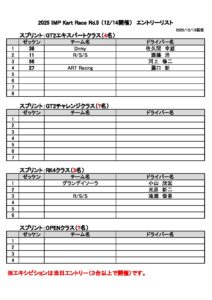 2025 IMP Kart Race Rd.5エントリーリスト 2025.12.13現在